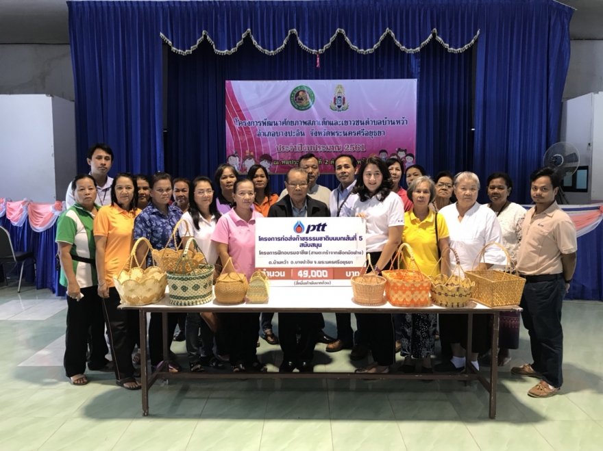 รายละเอียด : ในวันที่ 1 พฤศจิกายน 2561 นายสาคร ไวยนิทา นายกองค์การบริหารส่วนตำบลบ้านหว้า ร่วมกับ พ.อ.อ.พิษณุ สุขีลักษณ์ ปลัดองค์การบริหารส่วนตำบลบ้านหว้า ได้รับมอบงบประมาณ ในการจัดทำโครงการฝึกอบรมอาชีพ ให้แก่องค์การบริหารส่วนตำบลบ้านหว้า และกลุ่มอาชีพตำบลบ้านหว้า จากบริษัท ปตท. จำกัด (มหาชน) ณ หอประชุม หมู่ที่ 2 ตำบลบ้านหว้า