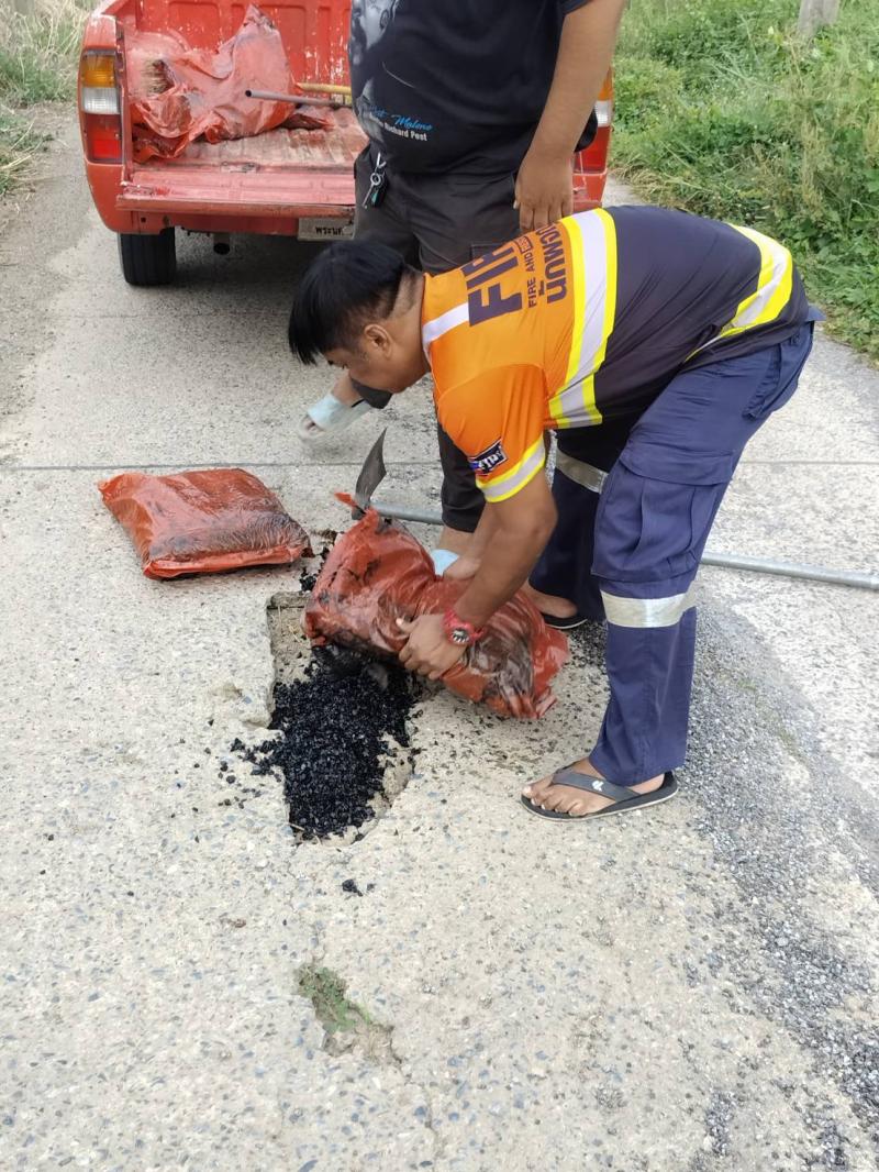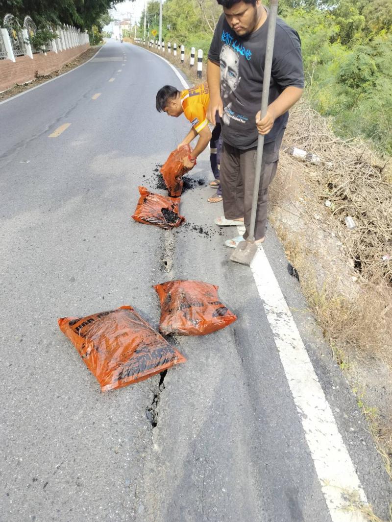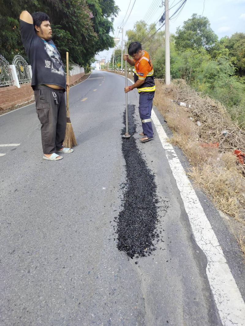 ดำเนินการ งาน ปภ.ลงยางแก้ไขปัญหาหลุมบ่อบนผิวจราจร ม.2 ม.5 ตามมาตรการความปลอดภัยทางถนน