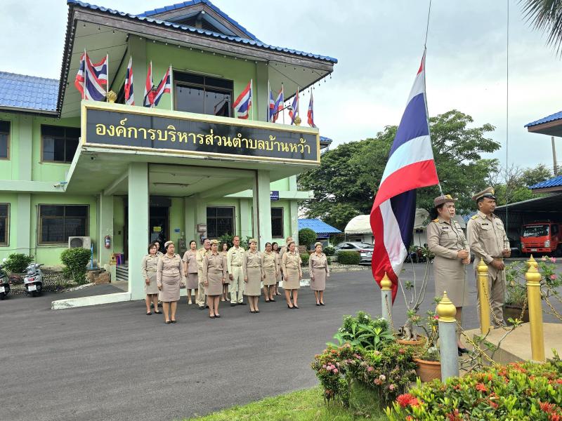 วันที่ 29 กันยายน 2568 เวลา 08.00 น. ณ บริเวณเสาธง องค์การบริหารส่วนตำบลบ้านหว้า ทำกิจกรรมเคารพธงชาติและร้องเพลงชาติไทย เนื่องในวันพระราชทานธงชาติไทย 28 กันยายน (Thai National Flag Day) ประจำปี 2568