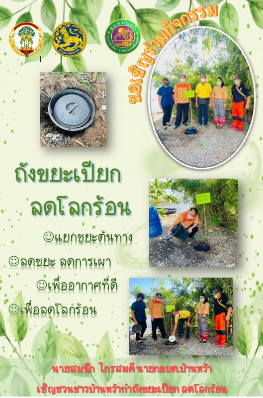 รายละเอียด : นายสมนึก ไกรสมดี นายกองค์การบริหารส่วนตำบลบ้านหว้า ขอเชิญชวนเฃชาวบ้านตำบลบ้านหว้า ร่วมจัดทำถังขยะเปียก เพื่อเป็นการลดโลกร้อน เพื่อลดปริมาณขยะ ในพื้นที่ตำบลบ้านหว้าของเรา