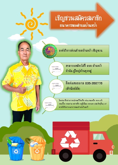 จัดทำโครงการธนาคารขยะตำบลบ้านหว้า จึงขอเชิญชวนพ่อแม่พี่น้องชาวตำบลบ้านหว้า สมัครสมาชิกธนาคารขยะตำบลบ้านหว้า ได้ที่กำนัน ผู้ใหญ่บ้านทุกหมู่ หรือที่องค์การบริการส่วนตำบลบ้านหว้า