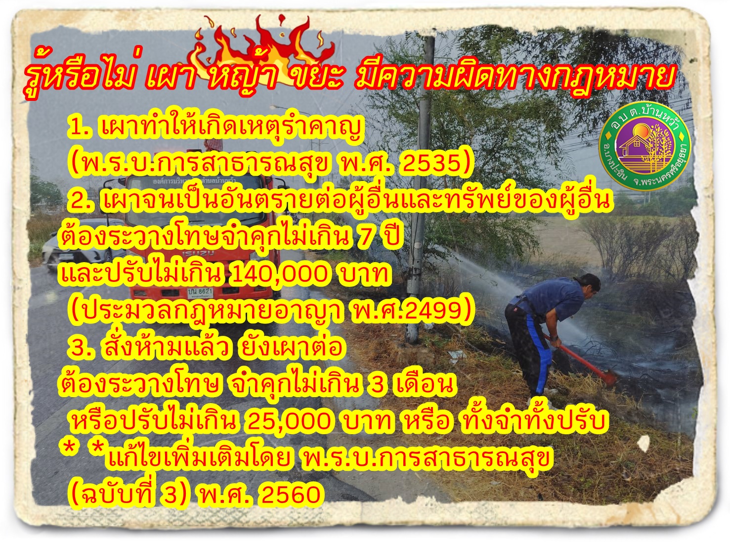 รู้หรือไม่ เผา หญ้า ขยะ มีความผิดทางกฎหมาย