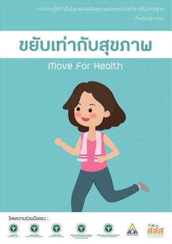 รายละเอียด : การเคลื่อนไหวร่างกาย (Physical Activity) หมายถึงการเคลื่อนไหวหรือการทำงานของร่างกายโดยใช้กล้ามเนื้อโครงสร้าง และทำให้มีการใช้พลังงานของร่างกายมากกว่าในขณะพัก สามารถแบ่งเป็น 3 ระดับ ดังนี้ ระดับเบา คือ ระดับที่มีการเคลื่อนไหวน้อยมาก เช่น การยืน การนั่ง ระดับปานกลาง คือ การเคลื่อนไหวออกแรงที่ใช้กล้ามเนื้อมัดใหญ่ซึ่งมีความหนักและเหนื่อยในระดับเดียวกับการเดินค่อนข้างเร็ว การขี่จักรยาน การเต้นรำ การทำงานบ้าน ระดับหนัก คือ การเคลื่อนไหวร่างกายที่มีการทำซ้ำและต่อเนื่อง โดยมีการใช้กล้ามเนื้อมัดใหญ่และมีระดับชีพจรมากกว่าร้อยละ 70 ของการเต้นชีพจรสูงสุด เช่น การวิ่ง การเดินขึ้นบันได การทำงานหนักในอาชีพชาวไร่-ชาวนา นักกีฬา โดยทั่วไป การเคลื่อนไหวร่างกายจึงมักหมายถึงสิ่งที่เกี่ยวข้องกับการดำเนินชีวิตในระดับเบาถึงระดับปานกลางเป็นส่วนใหญ่ แบ่งเป็น 4 กลุ่ม การทำงานบ้าน งานอาชีพ การเดินทาง และงานอดิเรกต่างๆ เช่น ร้องเพลง ท่องเที่ยว ฯลฯ การออกกำลังกาย หมายถึง การออกกำลังเคลื่อนไหวร่างกายที่มีการวางแผน มีแบบแผน โดยเป็นกิจกรรมที่เป็นการกระทำซ้ำๆ หรือสม่ำเสมอ โดยมีจุดมุ่งหมายเพื่อเพิ่มหรือคงไว้ซึ่งสมรรถภาพทางกาย ความแข็งแรงของกล้ามเนื้อ ความยืดหยุ่นของกล้ามเนื้อและข้อ มีลักษณะกว้างๆ 4 ลักษณะ การออกกำลังกายแบบเต้นแอโรบิก การออกกำลังกายต้านน้ำหนักตัว การออกกำลังกายเพื่อสร้างความแข็งแรงของกล้ามเนื้อ และการออกกำลังกายเพื่อสร้างความยืดหยุ่นหรือความอ่อนตัว ปัจจุบันวัยทำงานมีวิถีชีวิตส่วนใหญ่อยู่ในที่ทำงาน ลักษณะของการทำงานมีการออกแรงและเคลื่อนไหวร่างกายน้อยลง นั่งทำงานหรือนั่งประชุมนาน ๆ การทำงานในลักษณะซ้ำๆ ทำให้มีการใช้ กล้ามเนื้อมัดเดิมอยู่ตลอดเวลา รวมถึงการเดินทางด้วยยานพาหนะส่วนตัว และการใช้โทรศัพท์มือถือเป็นระยะเวลานาน ทำให้ วัยทำงานมีกิจกรรมทางกาย ไม่เพียงพอและมีพฤติกรรมเนือยนิ่งมากขึ้น ส่งผลให้วัยทำงานมีปัญหาสุขภาพตามมาอย่างหลีกเลี่ยงไม่ได้ ทั้งน้ำหนักตัวที่เกินมาตรฐาน การเจ็บป่วยด้วยโรคไม่ติดต่อเรื้อรังที่นับวันจะทวีความรุนแรงเพิ่มขึ้น ซึ่งเราสามารถป้องกันและลดความเสี่ยงเหล่านี้ลงได้ง่ายๆ ด้วยการมีกิจกรรมทางกายและลดพฤติกรรรมเนือยนิ่ง