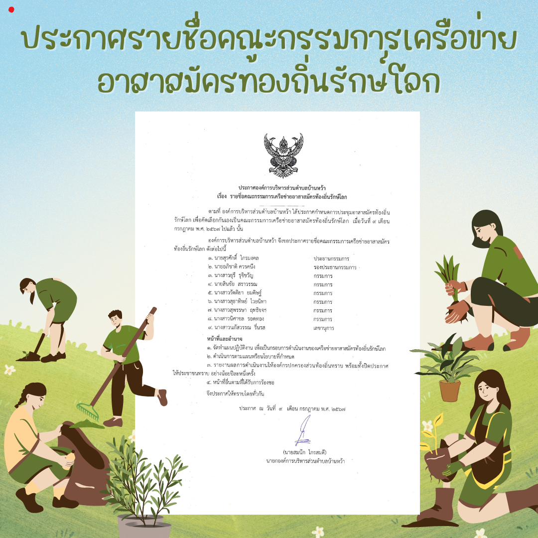 ประกาศรายชื่อคณะกรรมการเครือข่ายอาสาสมัครท้องถิ่นรักษ์โลก