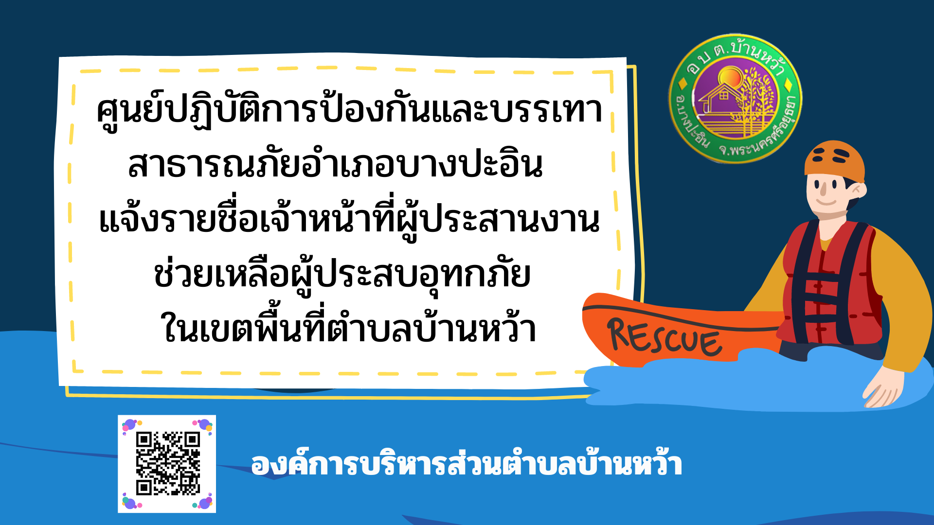 แจ้งรายชื่อเจ้าหน้าที่ผู้ประสานงานช่วยเหลือผู้ประสบอุทกภัย