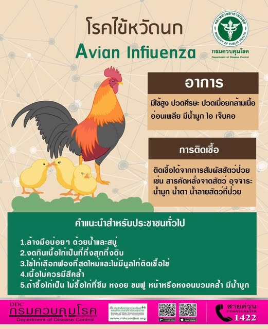 หากมี ไข้ ไอ ปวดเมื่อยร่างกาย และมีประวัติสัมผัสสัตว์ปีก/ผู้ป่วยปวดบวม รีบพบแพทย์ และแจ้งประวัติสัมผัสโรค/ประวัติการเดินทาง