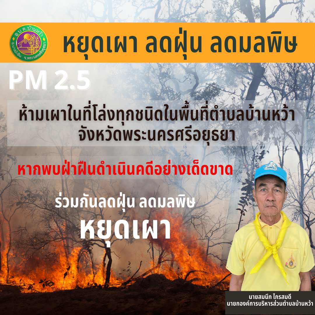 ขอความร่วมมือประชาชน อย่าจุดไฟเผาหญ้า เผาขยะ ในพื้นที่โล่งเพราะนอกจากจะทำให้เกิดควัน และส่งผลกระทบให้มีค่าฝุ่นละออง หรือ PM2.5 สูงขึ้นแล้ว การเผาหญ้า เผาขยะ มีความผิดทั้งโทษจำ และโทษปรับ