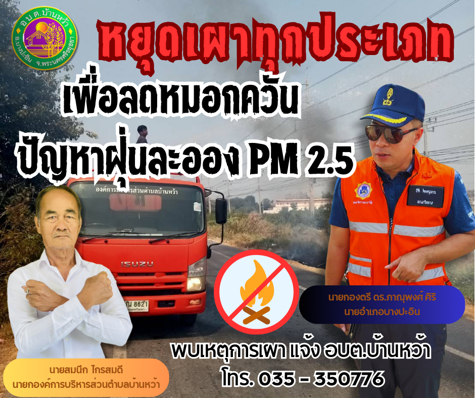 รายละเอียด : ????**ร่วมกันลดฝุ่น ลดมลพิษ** พบเหตุแจ้งอบต.บ้านหว้า ????????#หยุดเผา งดเผาหญ้า งดเผาขยะ งดเผาวัชพืช ไร่นา ผลผลิตทางการเกษตร ????เพื่อป้องกันและแก้ไขปัญหาฝุ่นละอองขนาดเล็ก (PM 2.5) พรบ.การสาธารณสุข" ควบคุมต้นเหตุฝุ่น PM 2.5 ✨????️ ???? การเผามูลฝอยในที่โล่ง ???? - ห้ามเผามูลฝอยในที่โล่ง ฝ่าฝืนมีโทษตามมาตรา 68 ปรับไม่เกิน 50,000 บาท** ???? ???? เตาเผามูลฝอยทั่วไป/มูลฝอยติดเชื้อ ???????? - กำกับดูแลให้ปล่อยฝุ่นละอองไม่เกินค่ามาตรฐานตามที่กฎหมายกำหนด - ขอความร่วมมือลดหรือชะลอการเผามูลฝอยในช่วงวิกฤตปัญหาฝุ่นละออง ???? การเผาวัสดุทางการเกษตร ???????? - เจ้าพนักงานท้องถิ่นมีอำนาจออกคำสั่งห้ามเผาได้ ตามมาตรา 27, 28 - ผู้ใดฝ่าฝืนมีโทษตามมาตรา 74 จำคุกไม่เกิน 3 เดือน หรือปรับไม่เกิน 25,000 บาท หรือทั้งจำทั้งปรับ ????ฝุ่นละอองจากสถานประกอบกิจการที่เป็นอันตรายต่อสุขภาพ ????️????️ - ขอความร่วมมือลดการปล่อยฝุ่นละอองขนาดเล็กในช่วงวิกฤติ - ไม่มีใบอนุญาตมีโทษตามมาตรา 71 จำคุกไม่เกิน 6 เดือน ปรับไม่เกิน 50,000 บาท หรือทั้งจำทั้งปรับ ????ร้านอาหารปิ้งย่างในชุมชน ???? - ไม่มีใบอนุญาต/ หนังสือรับรองการแจ้ง มีโทษตามกฎหมายว่าด้วยการสาธารณสุข ????ในกรณีมีกิจการใด ๆ หรือการกระทำใด ๆ ตั้งแต่ 2 แหล่งขึ้นไป ก่อให้เกิดฝุ่นละอองส่งผลกระทบต่อประชาชนจำนวนมากและครอบคลุมพื้นที่เป็นบริเวณกว้าง เจ้าพนักงานท้องถิ่นประกาศพื้นที่ควบคุมเหตุรำคาญ (ตามมาตรา 28/1) ???? สามารถติดต่อสอบถามข้อมูล/ร้องเรียน/แจ้งเหตุ ☎️เบอร์โทร : 035-350776 ⭐️เว็บไซต์ : http://www.banhwa.go.th ⭐️Facebook : อบต.บ้านหว้า #หยุดเผา #ลดฝุ่นพิษ #ท้องถิ่นจัดการได้ #สุขภาพดี #PM2.5