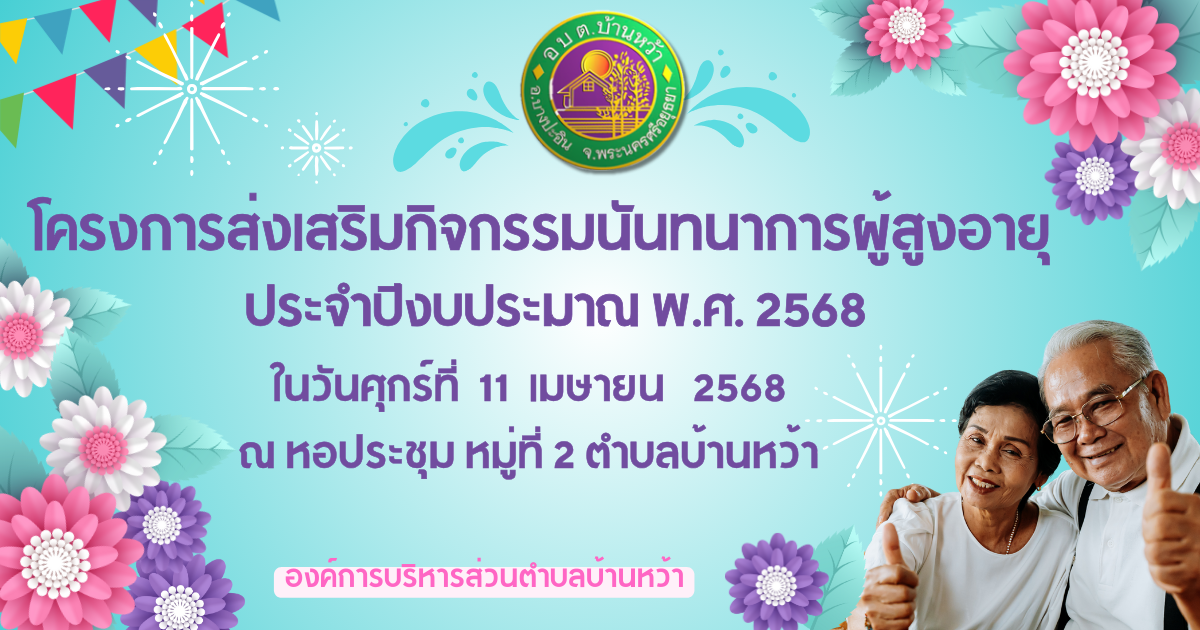 อบต.บ้านหว้า จัดโครงการส่งเสริมกิจกรรมนันทนาการผู้สูงอายุ ประจำปีงบประมาณ พ.ศ.2568 ในวันศุกร์ที่ 11 เมษายน 2568