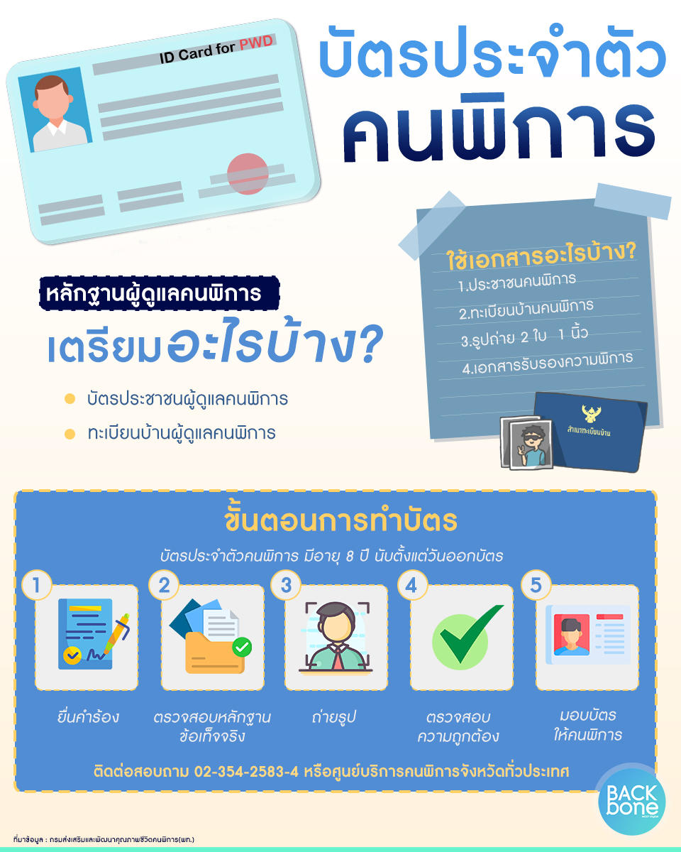 รายละเอียด : สิทธิประโยชน์สำหรับคนพิการ คนพิการ หมายถึง คนพิการ คือ บุคคลที่มีความผิดปกติหรือมีความบกพร่องทางร่างกาย ทางสติปัญญาหรือจิตใจ อย่างไรที่เรียกว่าคนพิการคนเป็นทรัพยากรที่มีคุณค่า ทั้งนี้เพราะคนเป็นกำลังสำคัญในการพัฒนาประเทศในทุกๆด้าน แต่ในทุกๆสังคมมิได้มีบุคคลที่มีความรู้ความสามารถเท่าเทียมกันทั้งหมดยังมีบุคคลประเภทหนึ่งซึ่งมีความผิดปกติหรือความบกพร่องทางด้านร่างกาย ทางสติปัญญา หรือทางจิตใจ ทำให้เป็นอุปสรรค ในการดำรงชีวิต การประกอบอาชีพ และการได้มีส่วนร่วมในกิจกรรมต่างๆ ของสังคม ซึ่งเราเรียกบุคคล เหล่านี้ว่าคนพิการ ประเภทความพิการมี 7 ประเภท 1. พิการทางการเห็น 2. พิการทางการได้ยินหรือสื่อความหมาย 3. พิการทางการเคลื่อนไหวหรือทางร่างกาย 4. พิการจิตใจหรือพฤติกรรม 5. พิการทางสติปัญญา 6. พิการทางการเรียนรู้ 7. พิการทางการออทิสติก เอกสารที่เกี่ยวข้องกับการยื่นทำบัตรประจำตัวคนพิการ… 1. บัตรประจำตัวประชาชนคนพิการ จำนวน 1 ฉบับ 2. สำเนาทะเบียนบ้านคนพิการ จำนวน 1 ฉบับ 3. บัตรประจำตัวประชาชนผู้ดูแล จำนวน 1 ฉบับ 4. สำเนาทะเบียนบ้านผู้ดูแล จำนวน 1 ฉบับ 5. รูปถ่าย 1 นิ้ว ถ่ายมาแล้วไม่เกิน 6 เดือน จำนวน 2 รูป 6. เอกสารรับรองความพิการโดยประกอบวิชาชีพเวชกรรมของสถานพยาบาลของรัฐหรือสถานพยาบาลเอกชนที่ผู้อำนวยการประกาศกำหนด เว้นแต่กรณีสภาพความพิการ อะไร คือ พิการโดยประจักษ์ พิการโดยประจักษ์ คือ สภาพความพิการที่สามารถ ขอมีบัตรประจำตัวคนพิการได้ โดยไม่ต้องมีใบรับรองความพิการ ได้แก่ คนตาบอดไม่มีลูกตาทั้งสองข้าง คนหูหนวกไม่มีรูทั้งสองข้าง คนพิการทางร่างกายที่แขนขาดตั้งแต่ข้อมือขึ้นไป หรือขาขาดตั้งแต่ข้อเท้าขึ้นไป บัตรประจำตัวคนพิการ ทำที่ไหนได้บ้าง? กรุงเทพมหานคร ติดต่อที่ ศูนย์คุ้มครองสวัสดิภาพชุมชน (หน่วยให้บริการร่วมกระทรวงการพัฒนาสังคมและความมั่นคงของมนุษย์)และหน่วยงานเครือข่ายที่รับจัดบริการให้อย่างเต็มใจ..ฝ่ายสังคมสงเคราะห์ โรงพยาบาลศิริราช โรงพยาบาลรามาธิบดี งานสิทธิประโยชน์ สถาบันราชานุกูล สถาบันสุขภาพเด็กแห่งชาติมหาราชินี และที่โรงพยาบาลพระมงกุฏเกล้า ต่างจังหวัด ติดต่อที่สำนักงานพัฒนาสังคมและความมั่นคงของมนุษย์จังหวัด (พมจ.) อยู่ที่ศาลากลางจังหวัด หรือที่ อบต./เทศบาล สิทธิประโยชน์คนพิการควรได้รับ คนพิการที่มีบัตรประจำตัวคนพิการแล้วสามารถยื่นคำขอใช้สิทธิประโยชน์สิ่งอำนวยความสะดวกอันเป็นสาธารณะ ตลอดจนสวัสดิการและความช่วยจากรัฐตามมาตรา 20 แห่งพระราชบัญญัติส่งเสริมและพัฒนาคุณภ