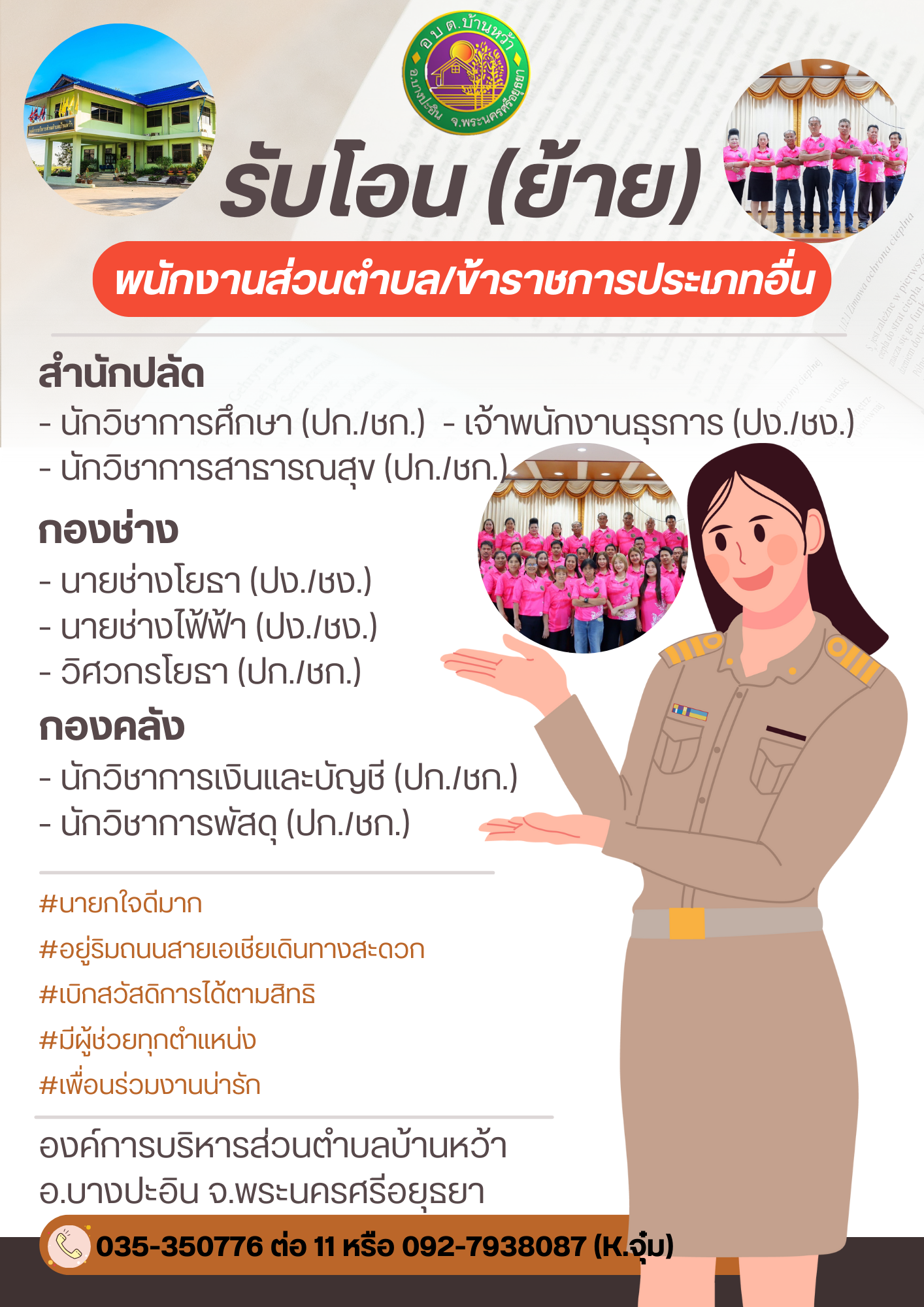 ชื่อเรื่อง : องค์การบริหารส่วนตำบลบ้านหว้า อ.บางปะอิน จ.พระนครศรีอยุธยา รับโอน(ย้าย)