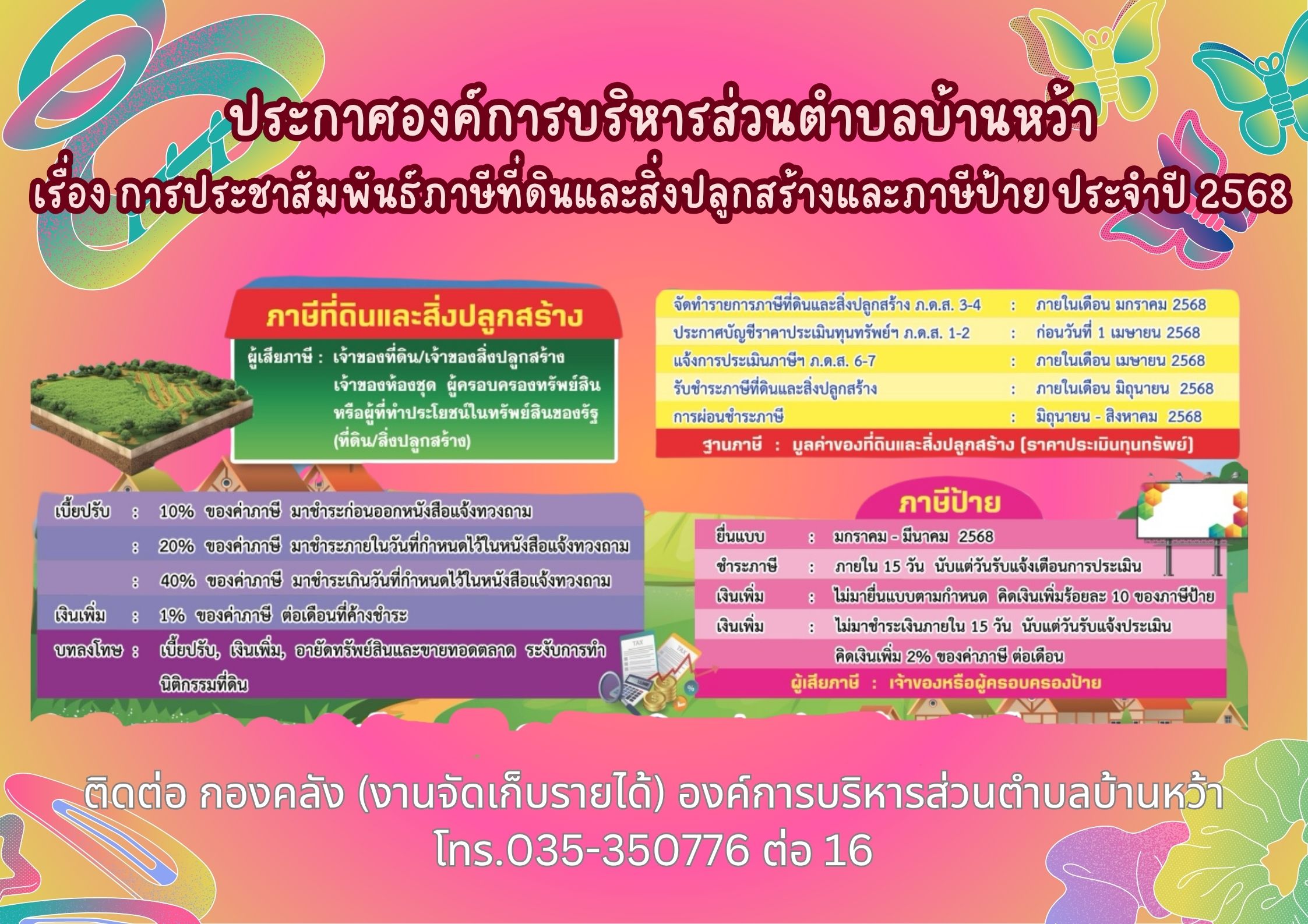 การชำระภาษีที่ดินและสิ่งปลูกสร้างและภาษีป้าย ประจำปี 2568