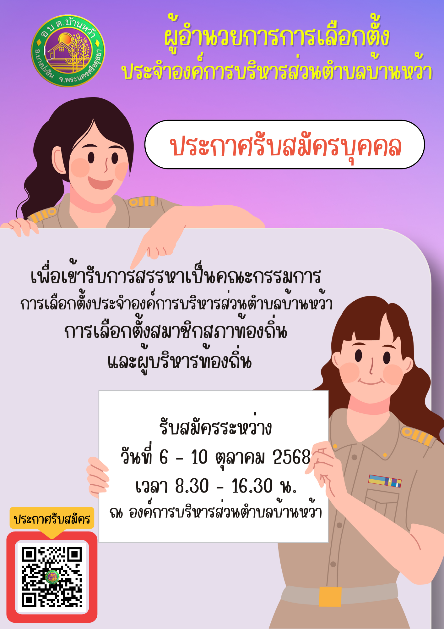 ด้วยสมาชิกสภาองค์การบริหารส่วนตำบลและนายกองค์การบริหารส่วนตำบลจะครบวาระการดำรงตำแหน่งในวันที่ 27 พฤศจิกายน 2568 และตามข้อ 31 และข้อ 34 ของระเบียบคณะกรรมการการเลือกตั้งว่าด้วยการเลือกตั้งสมาชิกสภาท้องถิ่นหรือผู้บริหารท้องถิ่น พ.ศ. 2562 และที่แก้ไขเพิ่มเติม กำหนดให้เมื่อมีกรณีที่ต้องมีการเลือกตั้งสมาชิกสภาท้องถิ่นหรือผู้บริหารท้องถิ่นขององค์กรปกครองส่วนท้องถิ่น ให้คณะกรรมการการเลือกตั้งแต่งตั้งคณะกรรมการการเลือกตั้งประจำองค์กรปกครองส่วนท้องถิ่น โดยให้ผู้อำนวยการการเลือกตั้งประจำองค์กรปกครองส่วนท้องถิ่นดำเนินการรับสมัครบุคคลผู้มีคุณสมบัติ และไม่มีลักษณะต้องห้าม เข้ารับการสรรหาเป็นคณะกรรมการการเลือกตั้งประจำองค์กรปกครองส่วนท้องถิ่น โดยให้มีระยะเวลาการรับสมัครไม่น้อยกว่า 5 วัน และให้ผู้สมัครยื่นใบสมัครด้วยตนเองต่อผู้อำนวยการการเลือกตั้งประจำองค์กรปกครองส่วนท้องถิ่น