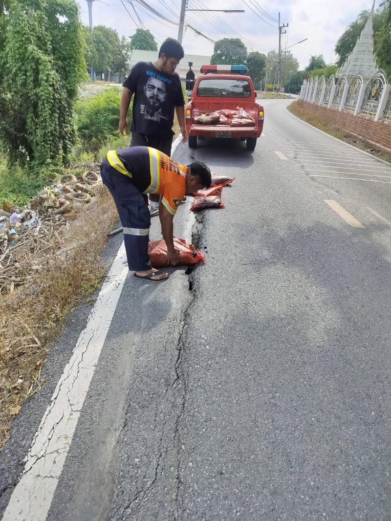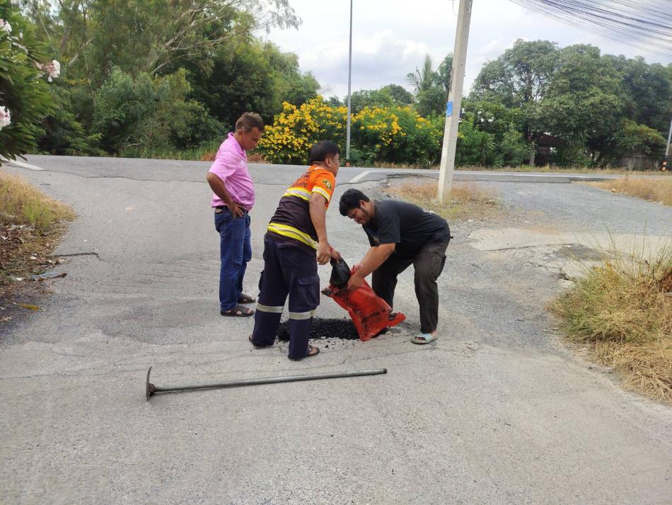 ????????ดำเนินการ งาน ปภ.ลงยางแก้ไขปัญหาหลุมบ่อบนผิวจราจร ม.2 ม.5 ตามมาตรการความปลอดภัยทางถนน