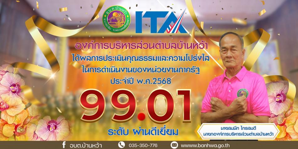 องค์การบริหารส่วนตำบลบ้านหว้า ได้รับการประเมิน ITA การประเมินคุณภาพและความโปร่งใสในการดำเนินงานของหน่วยงานภาครัฐ (ITA) ประจำปี พ.ศ. 2568 มีผลการประเมินฯ ได้รับคะแนน 99.01 ระดับผ่านดีเยี่ยม