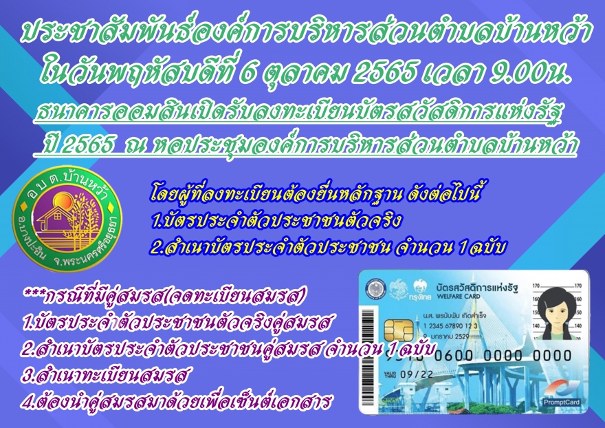 ชื่อเรื่อง : รับลงทะเบียนบัตรสวัสดิการแห่งรัฐปี 2565
