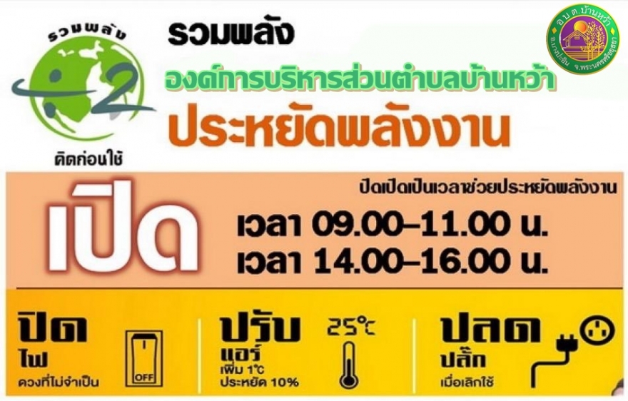 รายละเอียด : ตามที่ ให้ทุกส่วนราชการควบคุมดูแลการใช้น้ำมันเชื้อเพลิงและไฟฟ้าอย่างประหยัด โดยกำหนดเป้าหมายให้ลดจำนวนหน่วยการใช้น้ำมันและไฟฟ้าจากเดิม เมื่อเปรียบเทียบกับเดือนเดียวกันอย่างน้อยร้อยละ 10 นั้น ตามที่องค์การบริหารส่วนตำบลบางจาก มีแผนปฏิบัติการ “ รวมพลังประหยัดพลังงาน ” ซึ่งเป็นนโยบายการดำเนินงานอนุรักษ์พลังงานภายในองค์การบริหารส่วนตำบลบางจาก