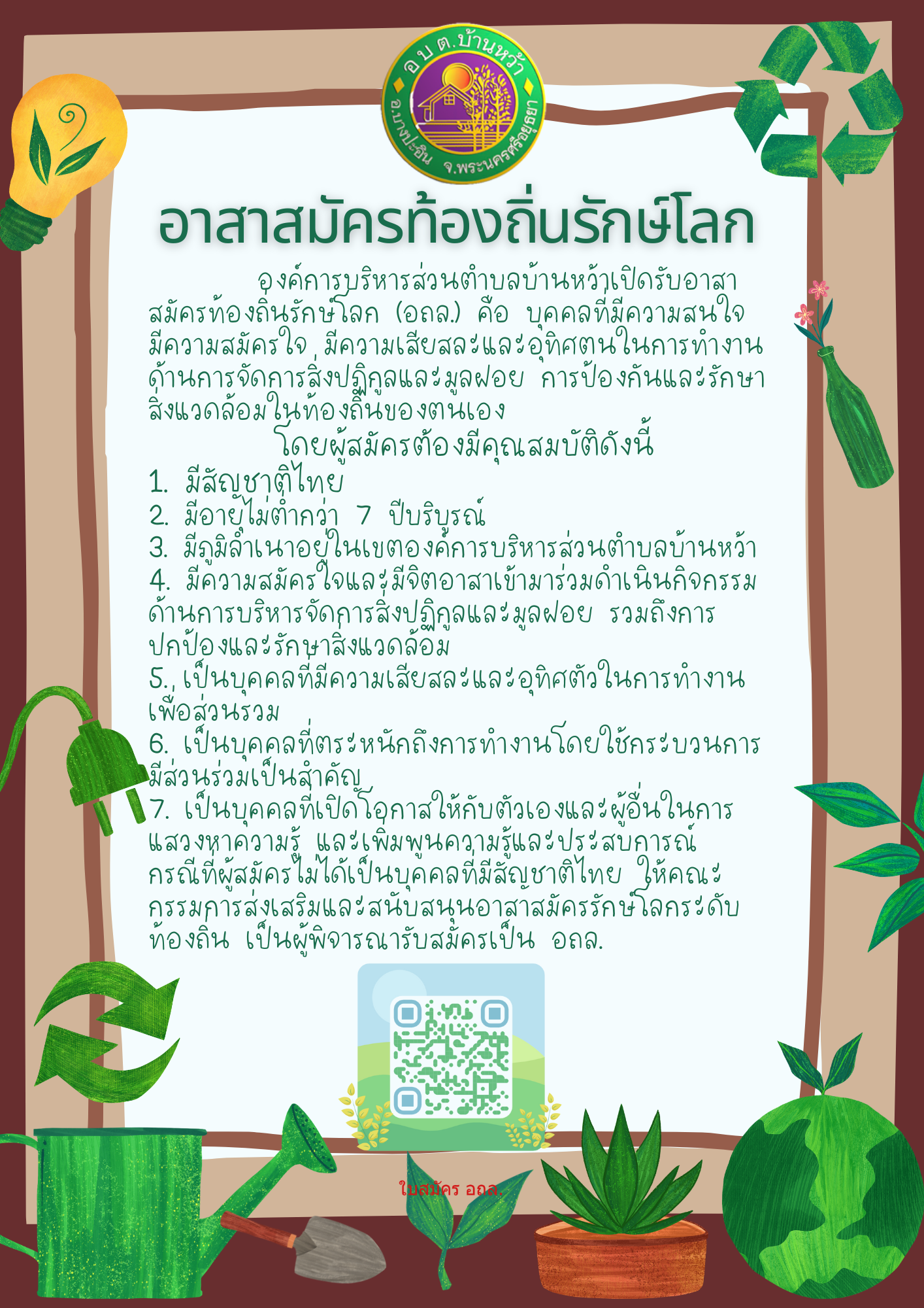 ชื่อเรื่อง : ประชาสัมพันธ์ รับสมัคร อาสาสมัครท้องถิ่นรักษ์โลก (อถล.)