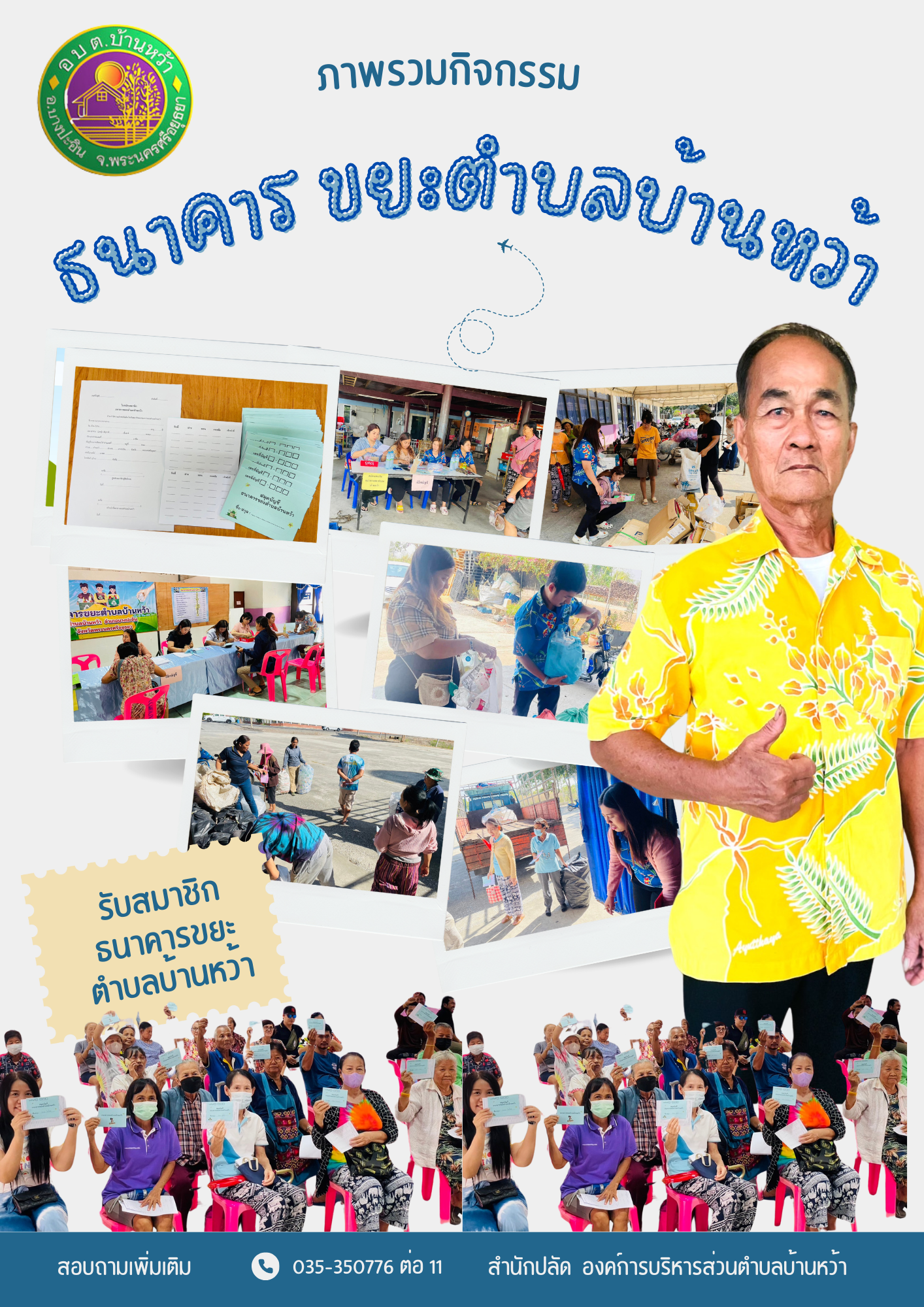รายละเอียด : ประชาสัมพันธ์การรับซื้อขยะ และการเปิดรับสมัครสมาชิกธนาคารขยะ ประจำปีงบประมาณ พ.ศ. 2568 องค์การบริหารส่วนตำบลบ้านหว้า ได้จัดทำโครงการจัดตั้งธนาคารขยะ รูปแบบการดำเนินงาน เพื่อส่งเสริมให้ภาคประชาชนมีการคัดแยกขยะรีไซเคิล โดยใช้หลักการของธนาคารมาประยุกต์ใช้ เพื่อให้สมาชิกนำขยะรีไซเคิลมาขายที่ธนาคารขยะ โดยมีคณะกรรมการธนาคารขยะชุมชน/หมู่บ้าน และคณะทำงานธนาคารขยะชุมชน/หมู่บ้านที่ได้รับการคัดเลือกมาดำเนินการคัดแยก และชั่งน้ำหนัก คำนวณเป็นมูลค่า และบันทึกข้อมูลการขายลงสมุดคู่ฝาก โดยใช้ราคาที่คณะทำงานธนาคารขยะชุมชน/หมู่บ้าน ได้ประสานงานกับผู้ประกอบการรับซื้อขยะรีไซเคิลเป็นเกณฑ์ในการกำหนดราคา