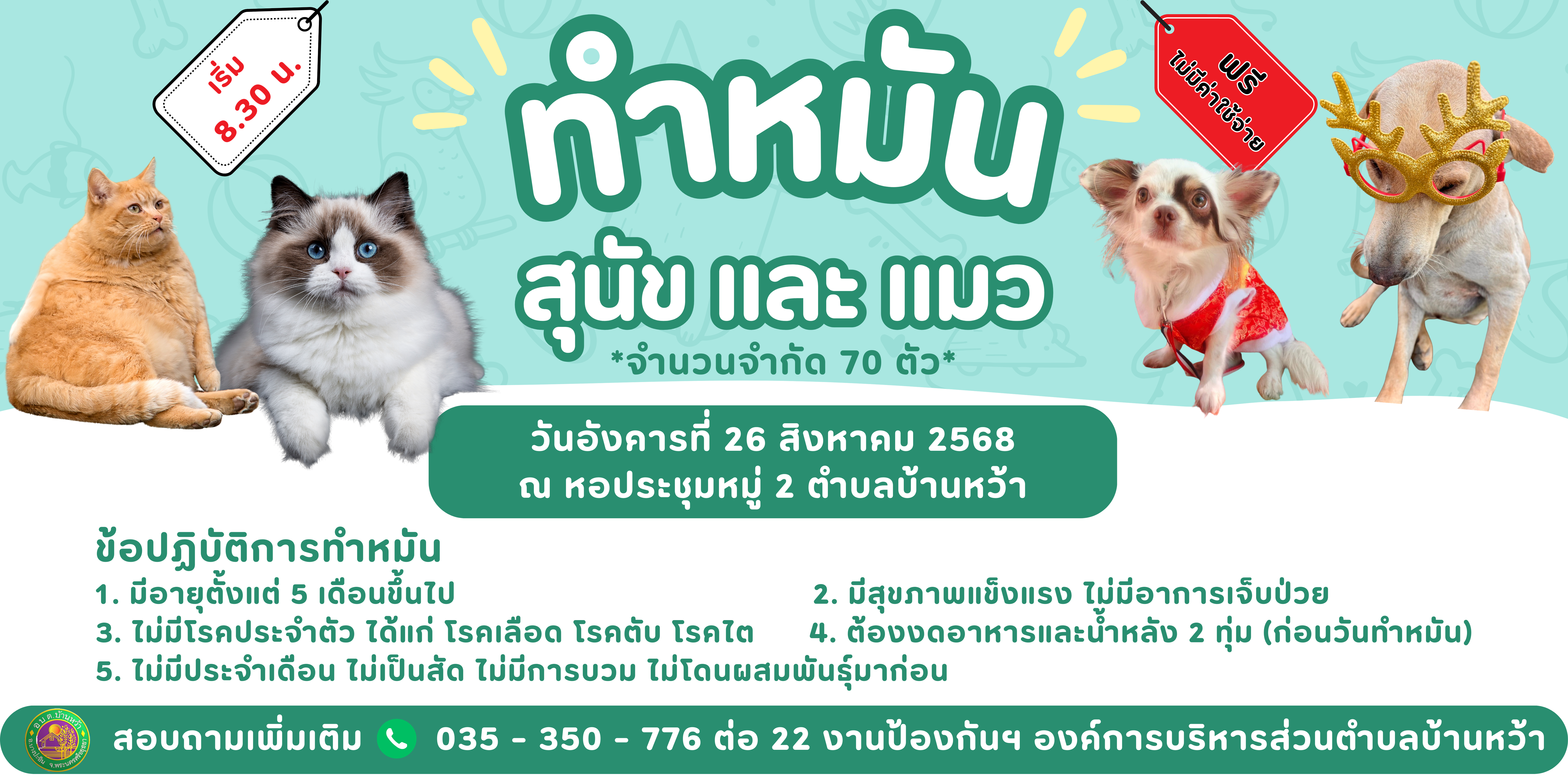 ชื่อเรื่อง : ประชาสัมพันธ์โครงการสัตว์ปลอดโรค คนปลอดภัย จากโรคพิษสุนัขบ้า (ทำหมันสุนัขและแมว)