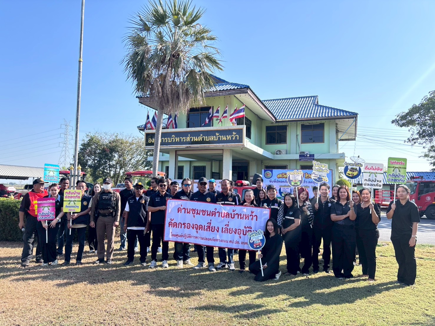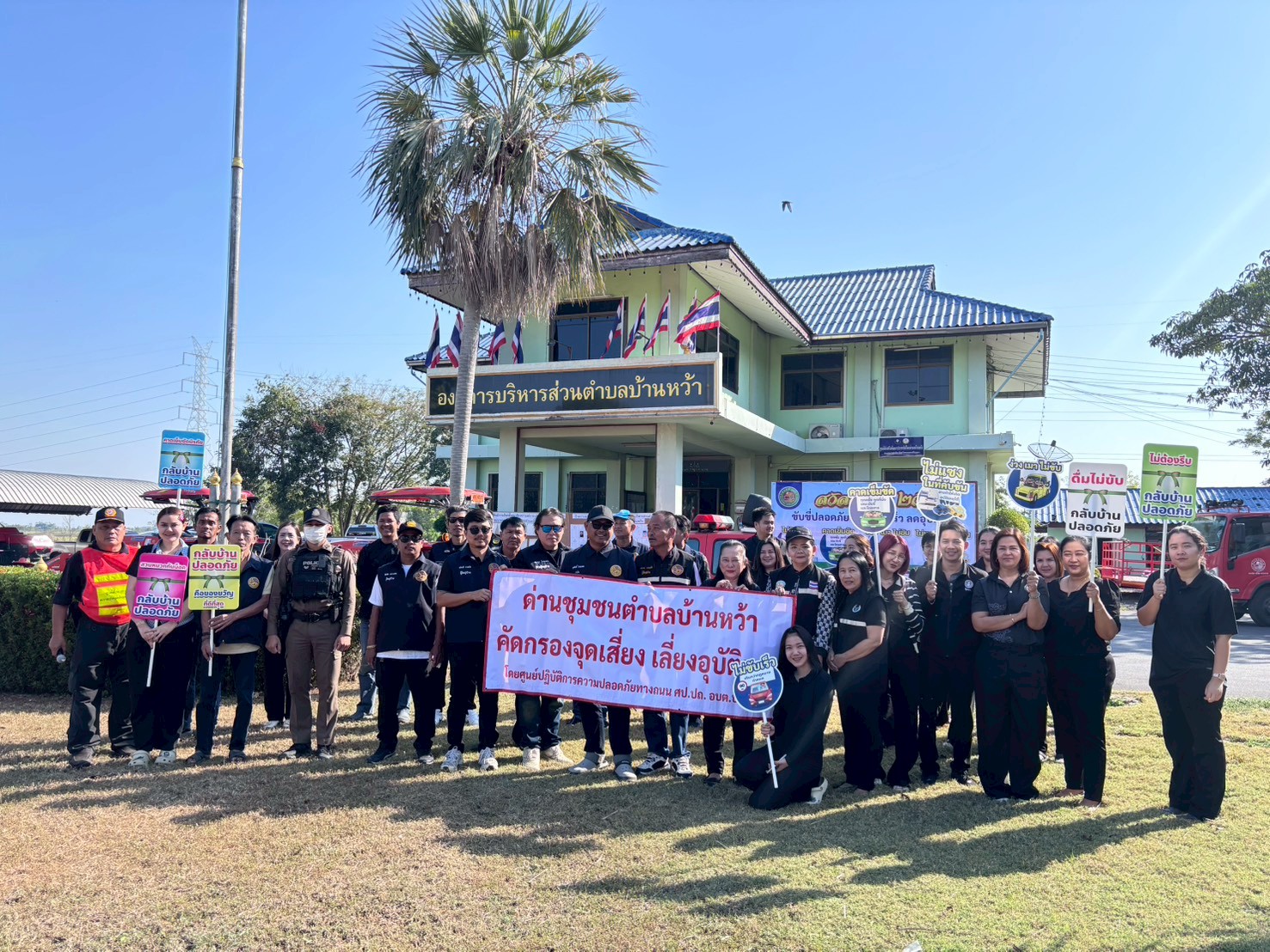 รายละเอียด : ✅วันที่ 30 ธันวาคม 2568 ⏰เวลา 09:30 น. ????นางดรรชนี สระบัว ปลัดองค์การบริหารส่วนตำบล ปฏิบัติหน้าที่ นายกองค์การบริหารส่วนตำบลบ้านหว้าพร้อมด้วย หัวหน้าส่วนราชการ พนักงานส่วนตำบล กำนัน ผู้ใหญ่บ้าน ผู้ช่วยผู้ใหญ่บ้าน สารวัตร แพทย์ประจำตำบลบ้านหว้า ???? ร่วมพิธีเปิดศูนย์ปฏิบัติการป้องกันและลดอุบัติเหตุทางถนนช่วงเทศกาลปีใหม่ พ.ศ.2569 “ขับขี่ปลอดภัย ลดความเร็ว ไร้อุบัติเหตุ” ในระหว่างวันที่ 30 ธันวาคม 2568 - 5 มกราคม 2569 ????️โดยเดินรณรงค์ ประชาสัมพันธ์ ขับขี่ปลอดภัย ลดความเร็ว ไร้อุบัติเหตุ ตามหมู่บ้าน แหล่งชุมชน ร่วมถึงร้านค้า และผู้ที่ใช้รถใช้ถนนสัญจรไปมา