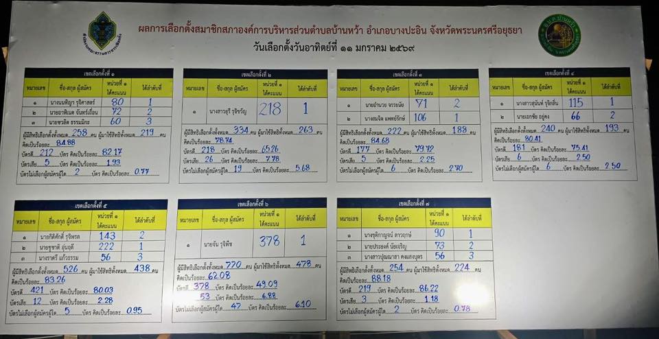 ขอแจ้งผลการนับคะแนนการเลือกตั้ง
